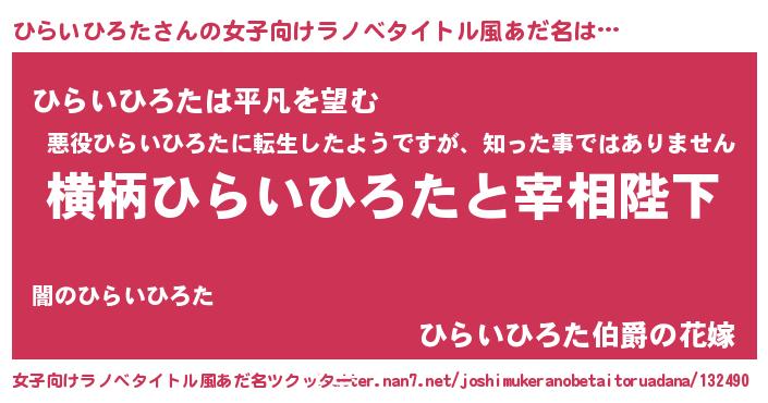 | 男性向けラノベタイトル風あだ名 | 『ひらいひろたに滅ぼされるだけの簡単なお仕事です』 |
