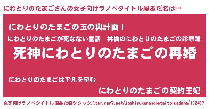 | 男性向けラノベタイトル風あだ名 | 『ノーゲーム・ノーニワトリノタマゴ』 |