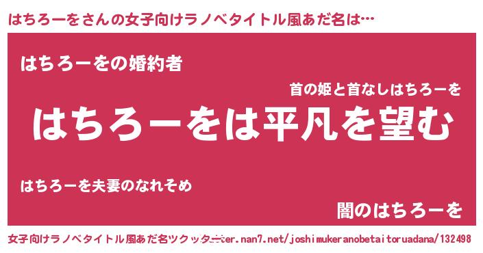 | ポケモン風あだ名 | 『ヒハチローヲ』『ハチロダネ』 |