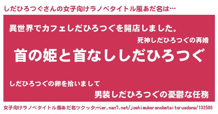 | 男性向けラノベタイトル風あだ名 | 『はたらくしだひろつぐさま!』 |