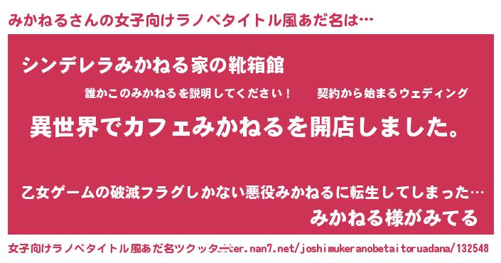 | 男性向けラノベタイトル風あだ名 | 『誰もが恐れるあのみかねるが、ぼくの専属メイドになるようです。』 |