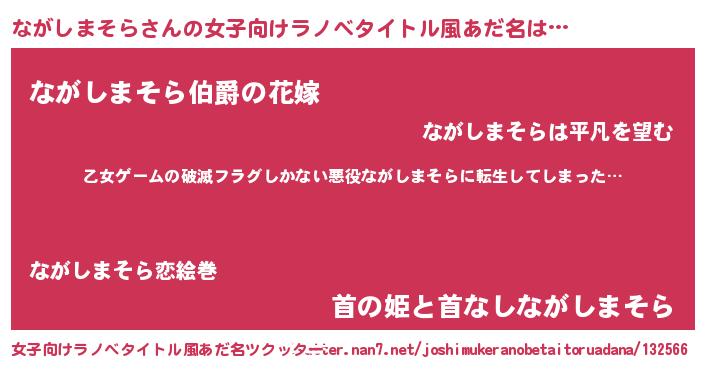 | 胡散臭い通販商品みたいなあだ名 | 『世界中を虜にした100年もののヴィンテージワイン…その名も「ながしまそら」』 |