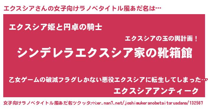 | 男性向けラノベタイトル風あだ名 | 『緋弾のエクスシア』『エクスシアの憂鬱』 |