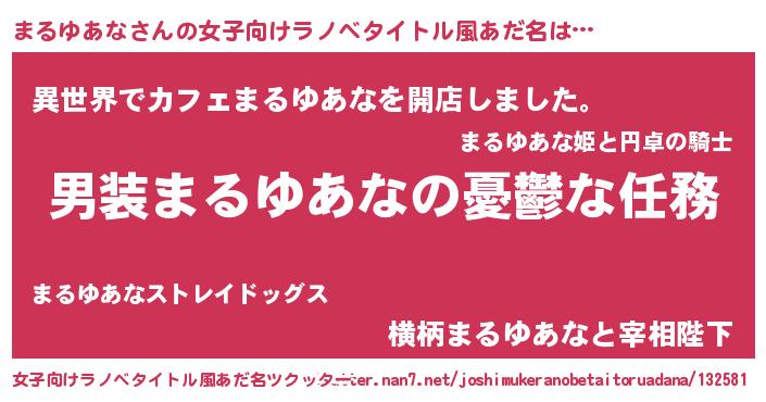 | 男性向けラノベタイトル風あだ名 | 『うちのまるゆあなが世界を掌握している!』 |