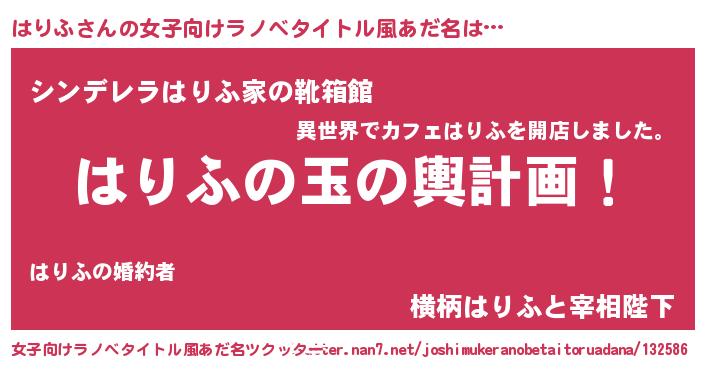 | ヘコむあだ名 | 『はりふ(小並感)』『酢こんぶ』 |