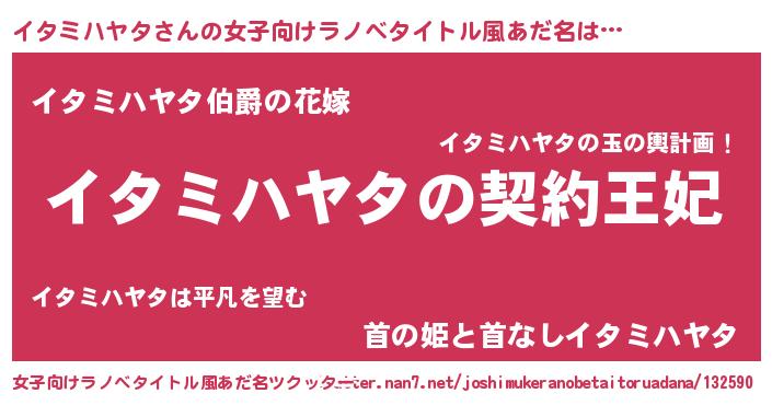 | 男性向けラノベタイトル風あだ名 | 『誰もが恐れるあのイタミハヤタが、ぼくの専属メイドになるようです。』 |