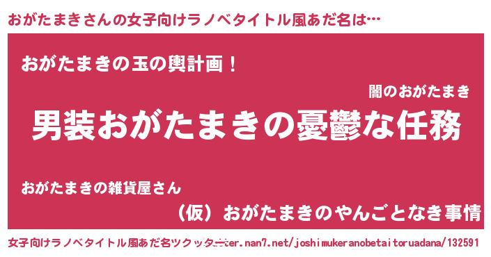 | 男性向けラノベタイトル風あだ名 | 『うちのおがたまきが世界を掌握している!』 |