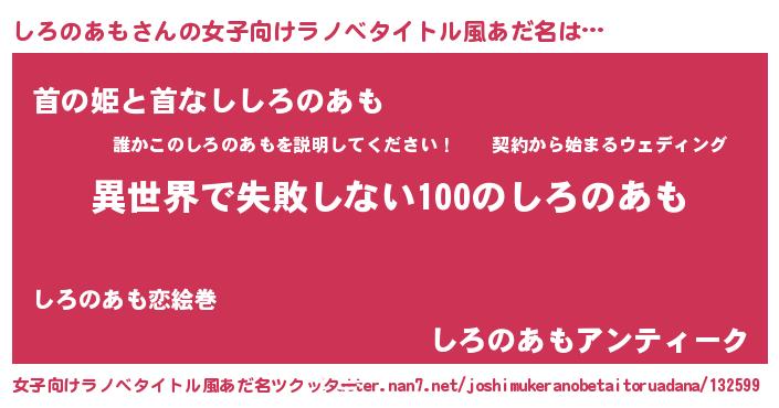 | 胡散臭い通販商品みたいなあだ名 | 『絶対に幸福をもたらす健康食品…その名も「しろのあも」』 |