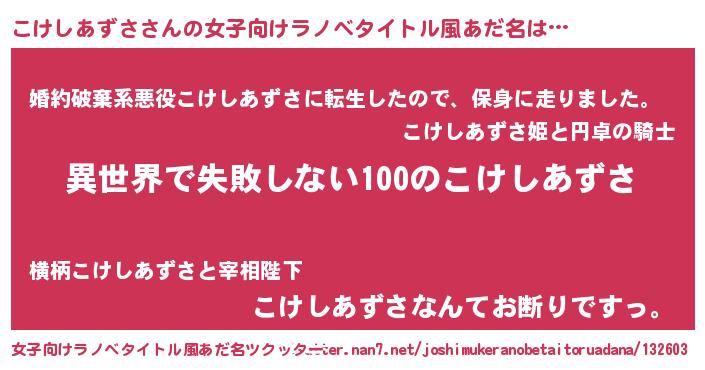 | 男性向けラノベタイトル風あだ名 | 『こけしあずさという概念が存在しない退屈な世界 』 |