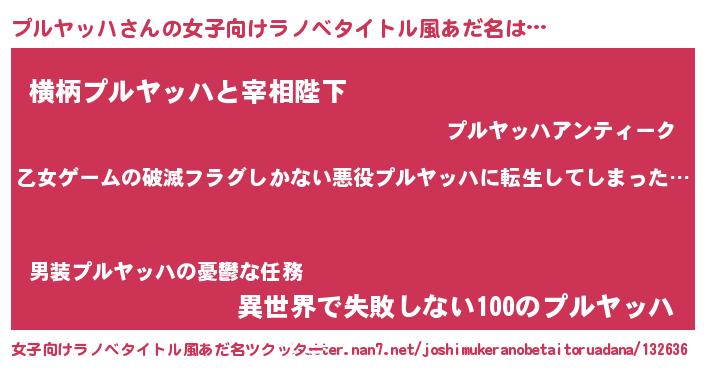 | 男性向けラノベタイトル風あだ名 | 『この素晴らしい世界にプルヤッハを!』 |
