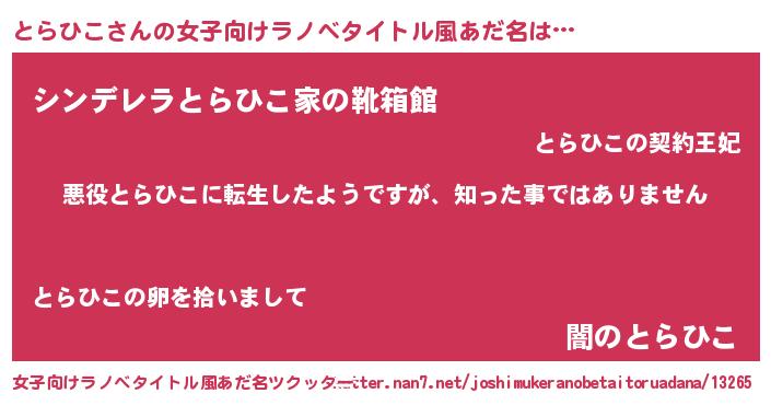 | 胡散臭い通販商品みたいなあだ名 | 『あなたにだけ特別に提供する限定10本のレアな日本酒…その名も「とらひこ」』 |
