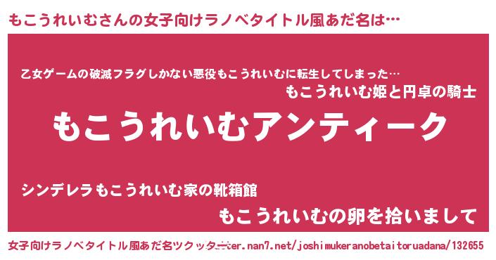 | 恥ずかしいあだ名 | 『モコウレイムデラックス』『もこっちょ』 |