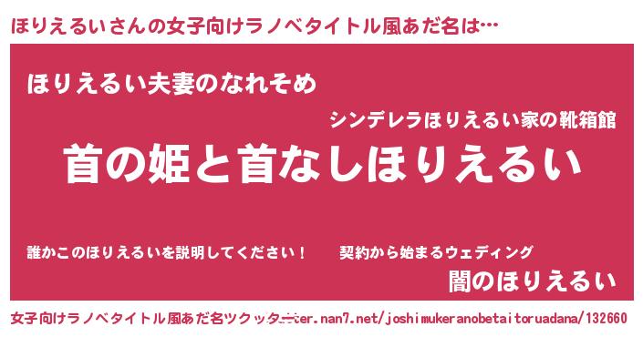 | 男性向けラノベタイトル風あだ名 | 『はたらくほりえるいさま!』 |