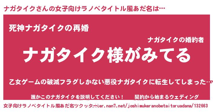 | ヒーロー風カッコイイあだ名 | 『幻影騎士ナガ』『慈愛の使者ナガタイク』 |