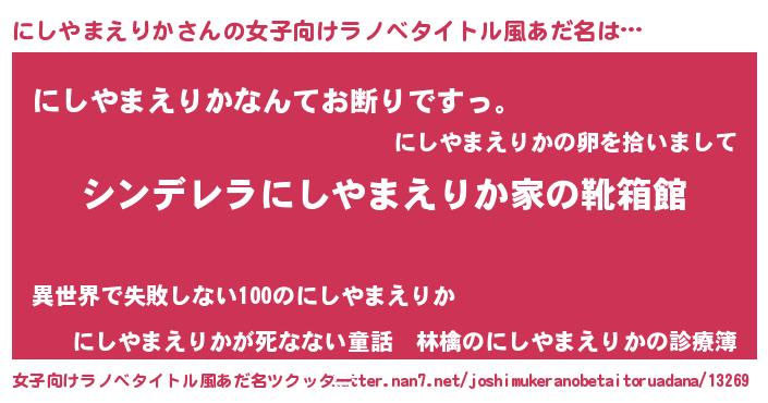 | ヘコむあだ名 | 『にしっぺ』『にしやまえりか(笑)』 |