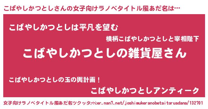 | ファンタジー風あだ名 | 『エターナルコバヤシカツトシー』 |