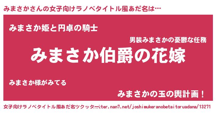 | ファンタジー風あだ名 | 『エターナルミマサカー』『ミマフェル』 |