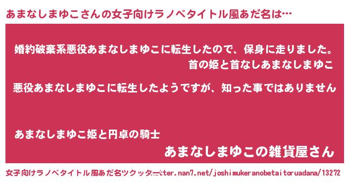 | 男性向けラノベタイトル風あだ名 | 『この素晴らしい世界にあまなしまゆこを!』 |