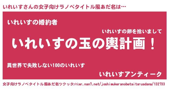 | 男性向けラノベタイトル風あだ名 | 『いれいす~年齢イコール彼女いない歴の魔法使い~』 |