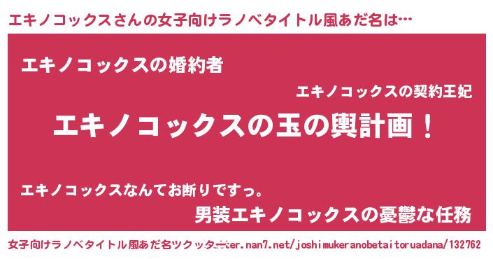 | 男性向けラノベタイトル風あだ名 | 『エキノコックス~年齢イコール彼女いない歴の魔法使い~』 |