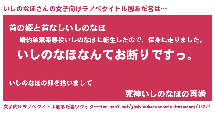 男性向けラノベタイトル風あだ名 | 『魔法科高校のいしのなほ』 |