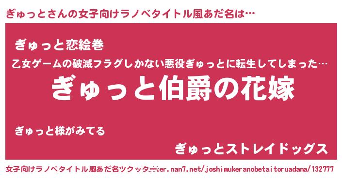 | ヒーロー風カッコイイあだ名 | 『ウルトラぎゅっとマン』『仮面ギュダー』 |
