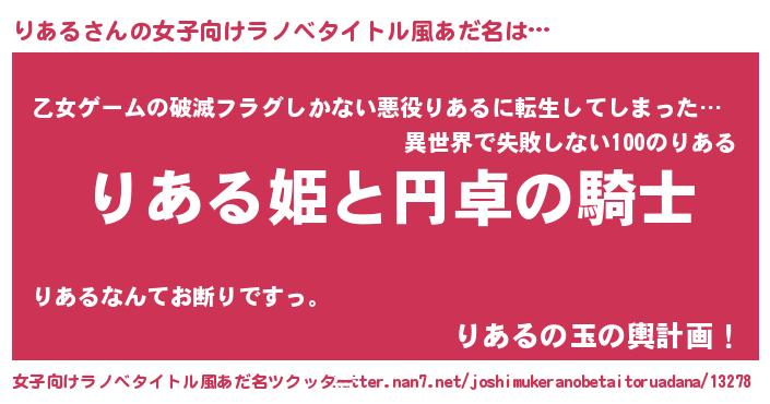 | 胡散臭い通販商品みたいなあだ名 | 『モテモテ間違いなし霊験あらたかなお札…その名も「りある」』 |