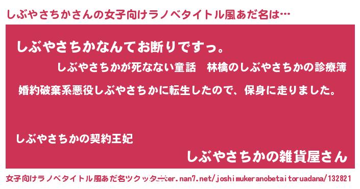 | 肩書あだ名 | 『しぶやさちか少将』『しぶやさちか閣下』 |