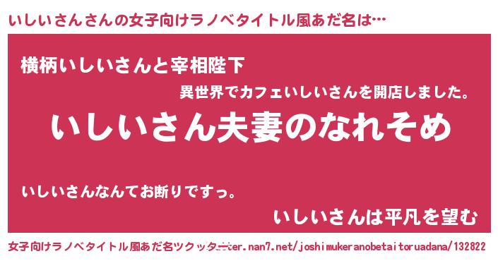 | ヘコむあだ名 | 『いしお』『いしいさん(笑)』 |