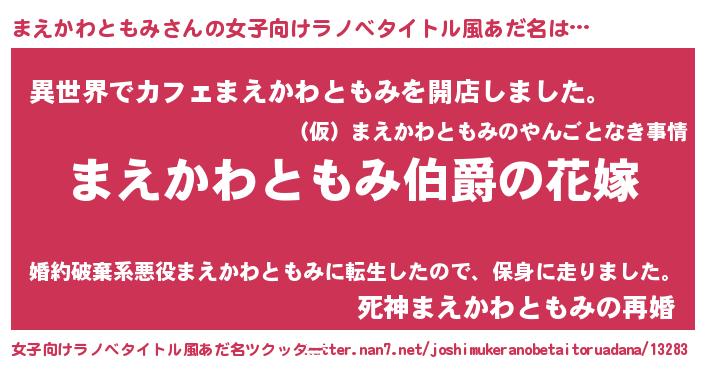 | 男性向けラノベタイトル風あだ名 | 『やはりまえかわともみの青春ラブコメはまちがっている 』 |