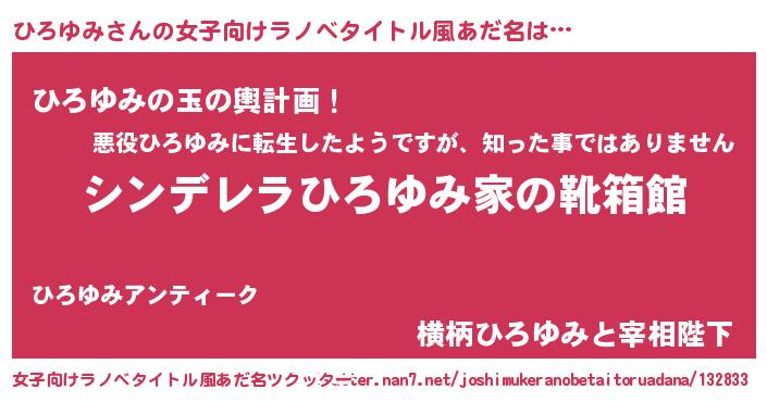 | ヒーロー風カッコイイあだ名 | 『仮面ヒロダー』『最強戦士ヒロユミ』 |