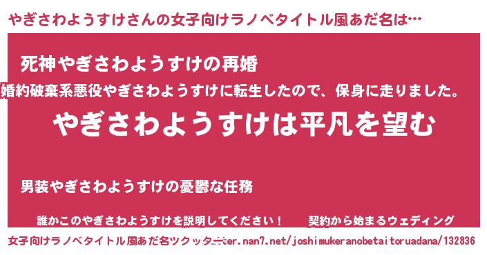 男性向けラノベタイトル風あだ名 | 『ダンジョンにやぎさわようすけを求めるのは間違っているだろうか』 |
