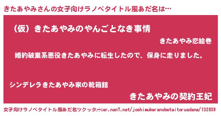 | ヘコむあだ名 | 『きたにゅー』『きたあやみ(小並感)』 |