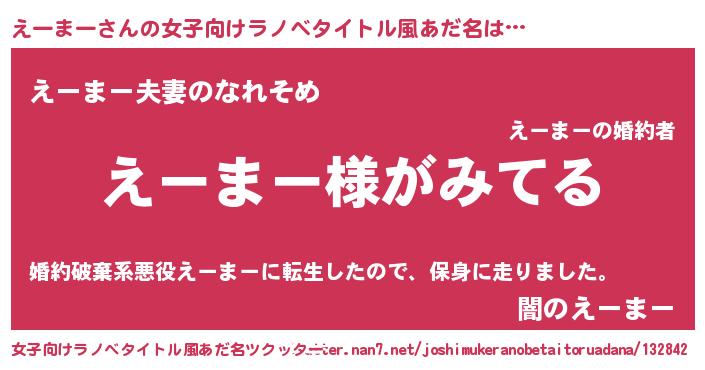 | 意味不明あだ名 | 『とにかく怪しいえーまー』 |
