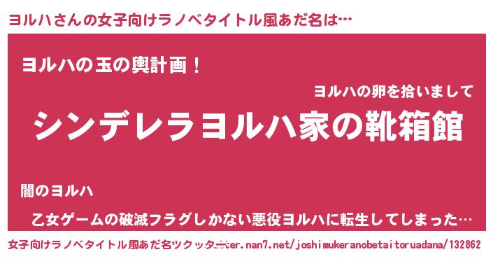| 胡散臭い通販商品みたいなあだ名 | 『ハリウッド女優が絶賛した100年もののヴィンテージワイン…その名も「ヨルハ」』 |