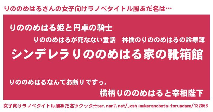 | ヘコむあだ名 | 『りのにゅー』『りののめはる(笑)』 |