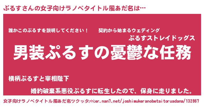 | 男性向けラノベタイトル風あだ名 | 『うちのぷるすが世界を掌握している!』 |