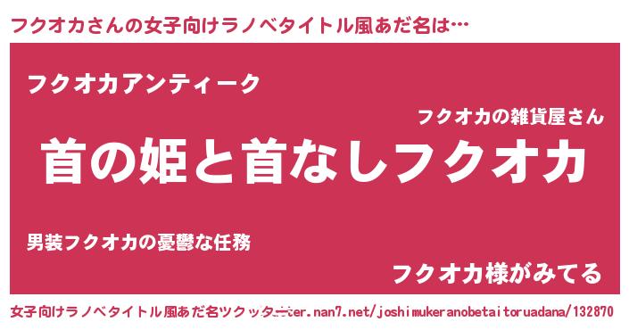 | ヒーロー風カッコイイあだ名 | 『ウルトラ戦士フクオカ』『幻影騎士フク』 |