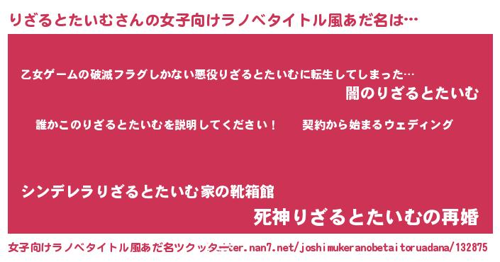 | 男性向けラノベタイトル風あだ名 | 『リザルトタイムアートオンライン』 |