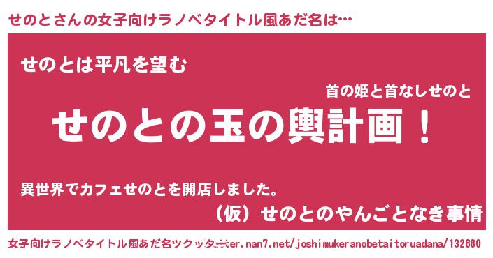 | 意味不明あだ名 | 『ヨモギ科せのと属』『ペロリンせのと』 |