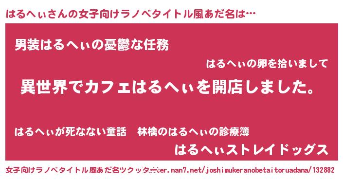 | 男性向けラノベタイトル風あだ名 | 『誰もが恐れるあのはるへぃが、ぼくの専属メイドになるようです。』 |
