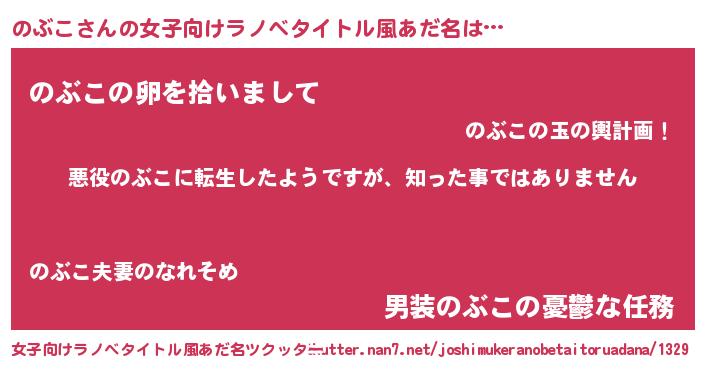 | 胡散臭い通販商品みたいなあだ名 | 『あなたにだけ特別に提供する限定10本のレアな日本酒…その名も「のぶこ」』 |