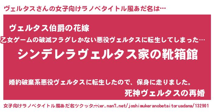 | 胡散臭い通販商品みたいなあだ名 | 『幸せが訪れる高級そうな絵画…その名も「ヴェルタス」』 |