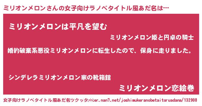 | 男性向けラノベタイトル風あだ名 | 『ミリオンメロンスレイヤー』 |