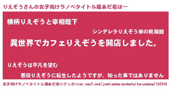 | ヘコむあだ名 | 『りえぞう(震え声)』『りえぷりん』 |