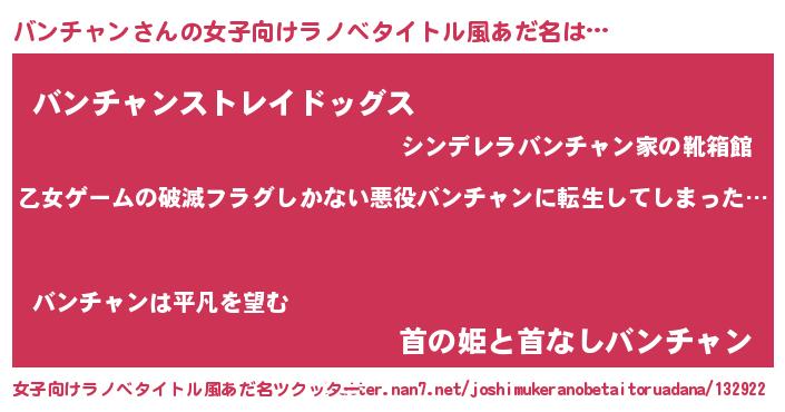 | 意味不明あだ名 | 『住所不定無職バンチャン(13歳)』 |