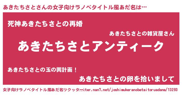 | 意味不明あだ名 | 『自称あきたちさと』 |