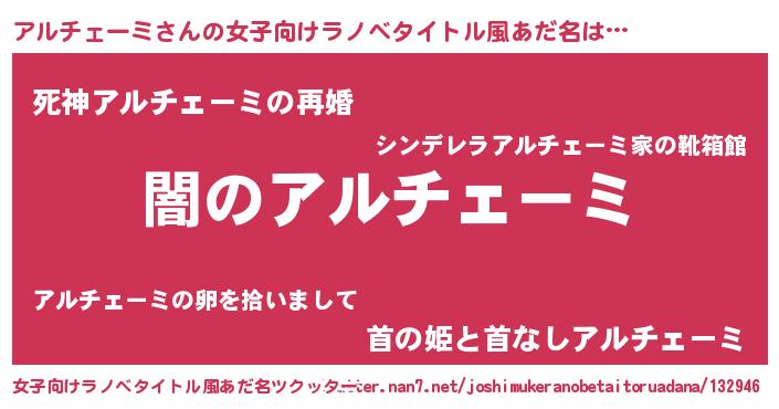 | 男性向けラノベタイトル風あだ名 | 『Re:アルチェーミから始める異世界生活』 |