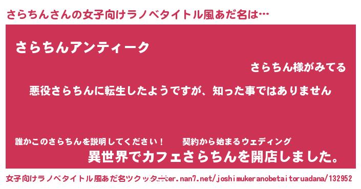 | 男性向けラノベタイトル風あだ名 | 『この素晴らしい世界にさらちんを!』 |