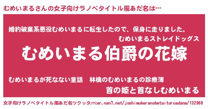 | 意味不明あだ名 | 『むめいまるフォーエバー』 |